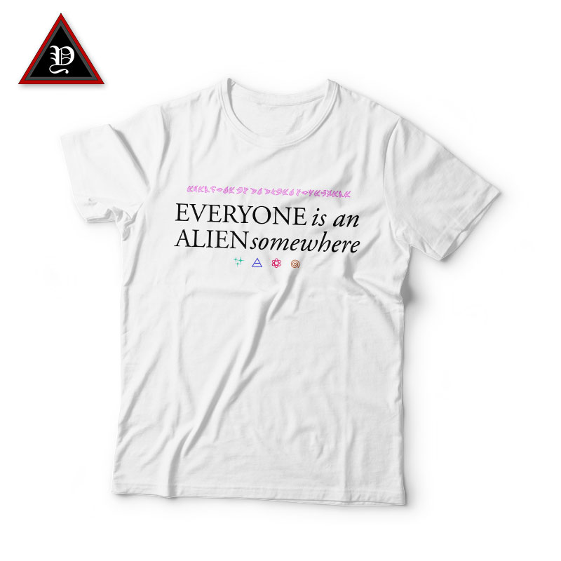 Ini Merupakan Salah Satu Desain/Gambar Baju Kaos Coldplay Everyone Is An Alien Somewhere Putih